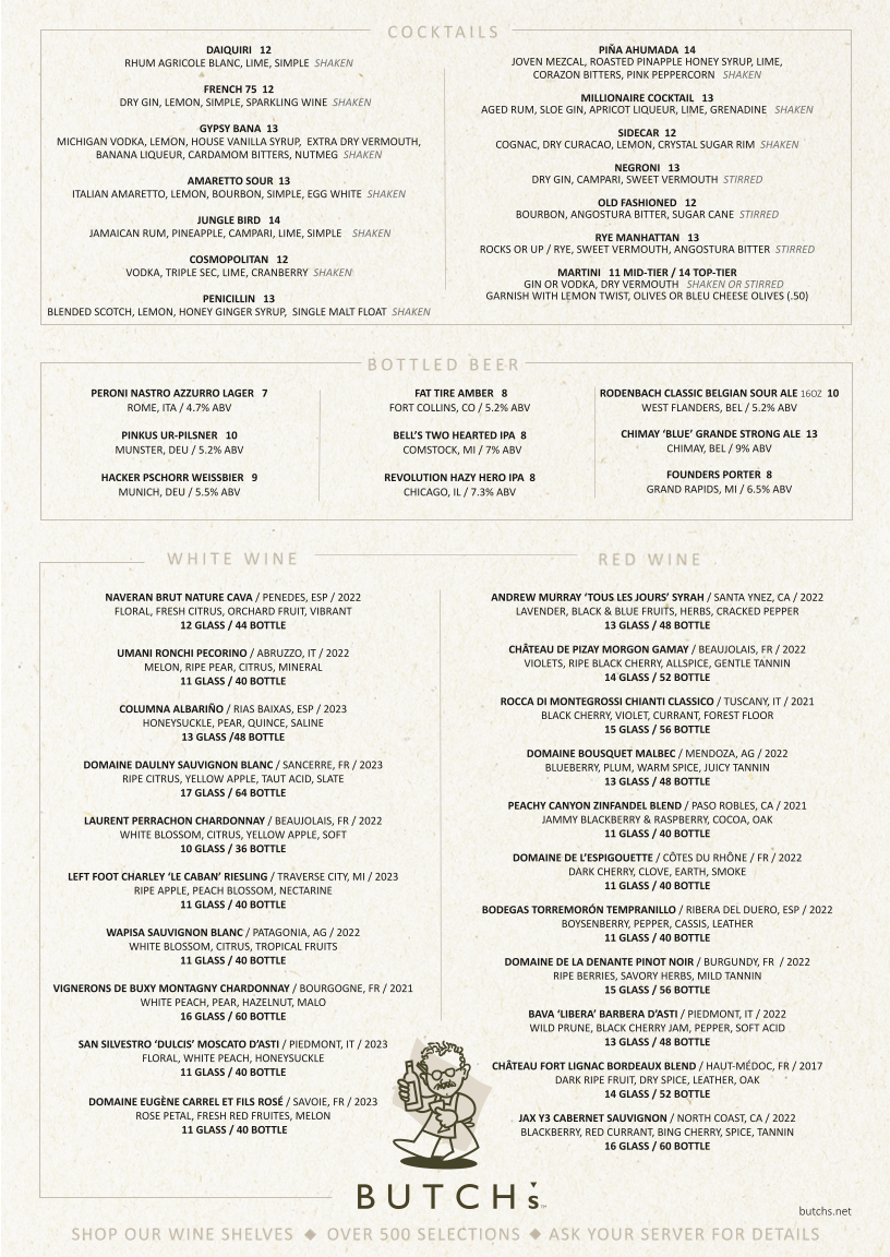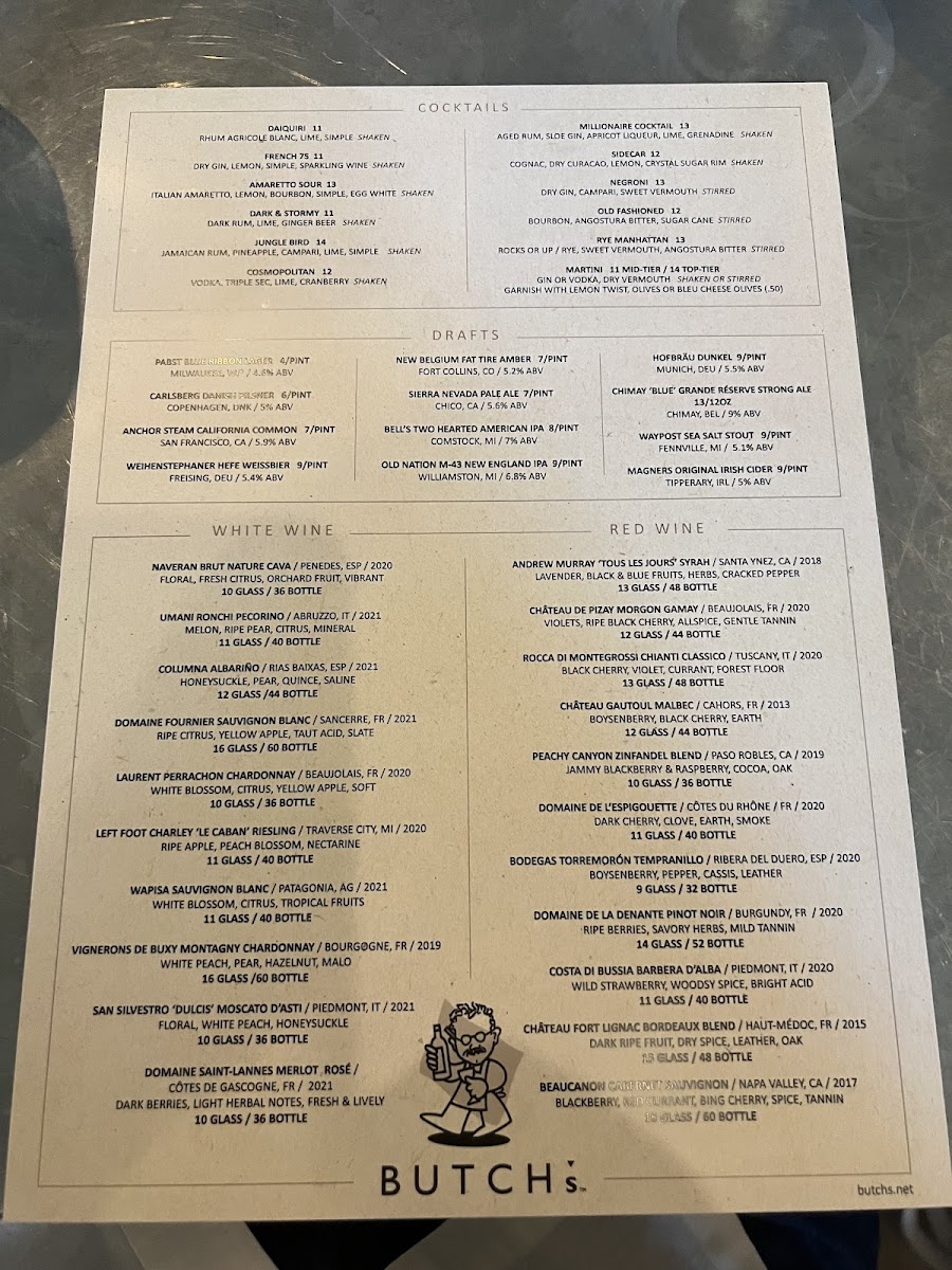 Butch's Dry Dock Menu